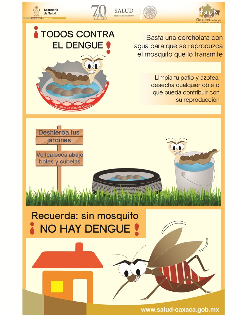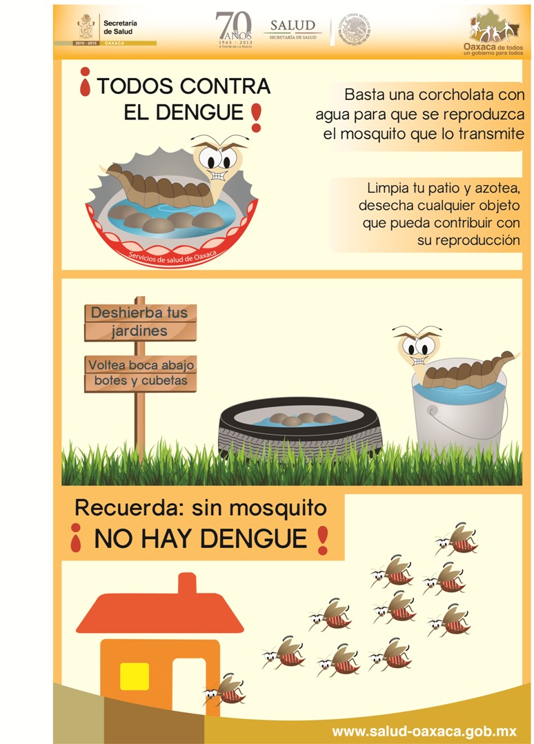 Abundó que por instrucciones del gobernador del estado, Gabino Cué Monteagudo, y el secretario de Salud, Germán Tenorio Vasconcelos, han sido tomadas las medidas necesarias para evitar que esta enfermedad cause estragos en los oaxaqueños.