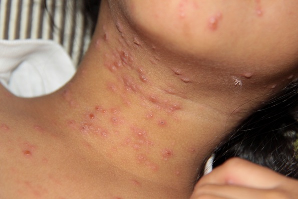 Sostuvo que estas provocan comezón, se rompen con facilidad y forman unas costras que se desprenden y desaparecen en dos semanas, las manchas aparecen en todo el cuerpo, especialmente en el tronco y cuero cabelludo en brotes sucesivos.