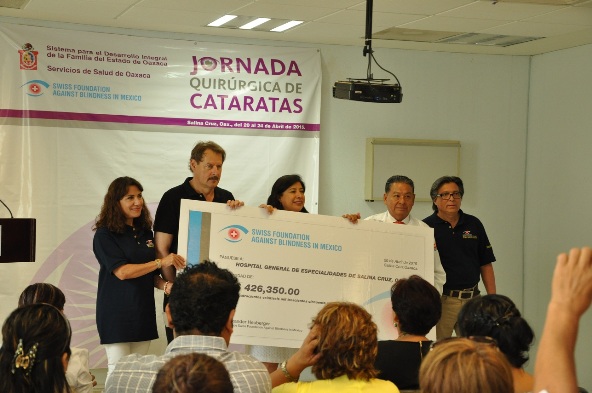 Así también, la Fundación Suiza contra la Ceguera en México por sus siglas (Swiss Foundation Against Blindness in México), hizo entrega al director del Hospital con Especialidades,Alejandro León Aragón,un donativo por 426, 350 pesos, con el que se adquirirá un equipo biomédico para equipar el hospital, con el que permita seguir operando a pacientes con ceguera en el Istmo de Tehuantepec.