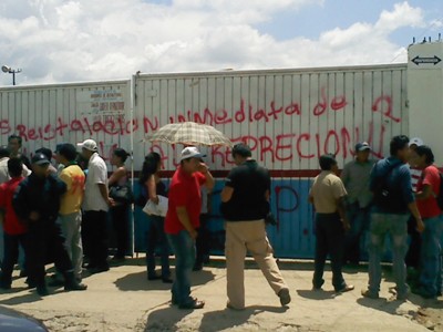 Ante las pintas a la fachada en demanda de reinstalación y el temor a una posible toma de oficinas y secuestro de vehículos, la empresa solicitó el apoyo de la Policía Estatal Preventiva (PEP), misma que envió a un comando de granaderos a resguardar el orden.