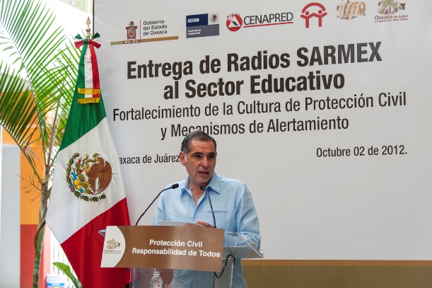 Con la dotación de dos mil 800 aparatos a instituciones de educación básica y autoridades municipales, el Gobernador Gabino Cué Monteagudo inició la entrega de un total de seis mil Radios de Alerta del Sistema de Avisos de Riesgos Mexicanos (SARMEX), con el objetivo de prevenir y alertar a la ciudadanía sobre eventos sísmicos y naturales que ocurran en territorio oaxaqueño.