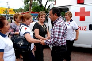 Salina Cruz., Oaxaca., a 03 de octubre 2012.-Margarita Burgete Cruz presidenta de Consejo de Cruz Roja Mexicana delegación Salina Cruz, agradeció el apoyo y compromiso del presidente municipal Gerardo García Henestroza, al reparar y poner en funcionamiento una de las ambulancias que se encontraba obsoleta por falta de recursos para acondicionarla.