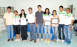 Así mismo hizo entrega de reconocimiento a Istvan Raymundo Sosa Betanzos, Vianey Anhai Sosa Betanzos, Rogery Aryton Galue García y Alejandra Martínez Soriano, estrecho la mano de cada uno de los jóvenes y los exhortó a continuar entrenando con mayor esfuerzo para poner en alto a Salina Cruz y el estado de Oaxaca.