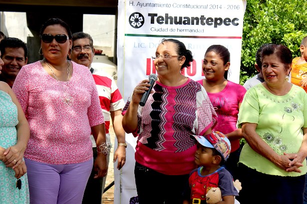 Patricia Peña durante la bienvenida a las autoridades, expresó su agradecimiento por el apoyo otorgado, por la firme decisión de cumplir con hechos y trabajo a los habitantes de la colonia y generar un desarrollo y bienestar en las familias tehuantepecanas.