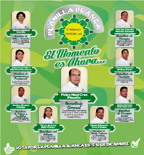Con un total de 7204 Votos emitidos por parte de la Base Trabajadora; la planilla Blanca de la Unidad Sindical obtuvo 3029 sobre la planilla Roja que contó con 2918 votos a favor, en 3 lugar la Planilla Verde con 953 votos Y por último la planilla Arena con 304 votos.