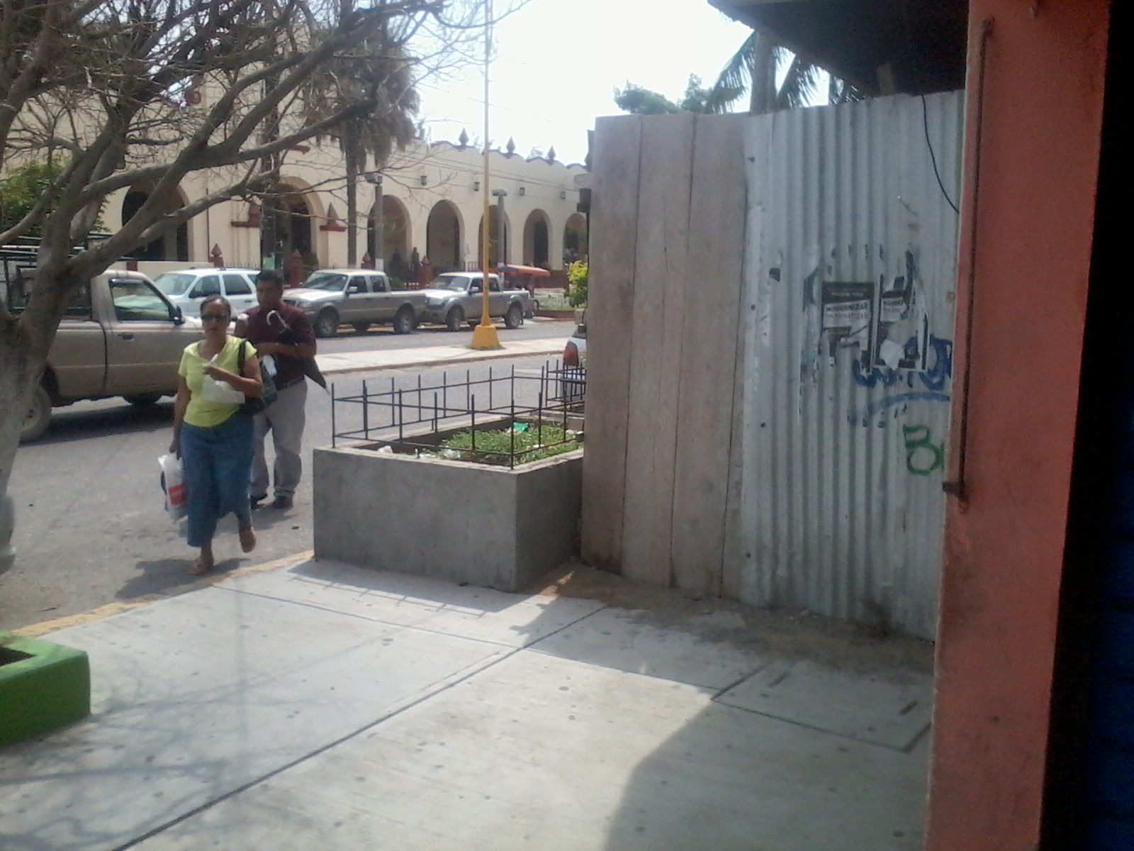 Salina Cruz, Oax. Diciembre 11 del 2014.- La construcción de un edificio que por más de tres años ha permanecido en el abandono, continúa exponiendo  la integridad de los peatones al obstruir la banqueta en pleno centro de la ciudad.