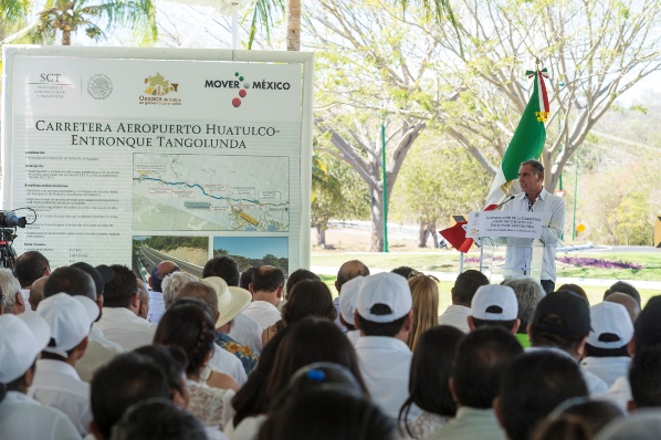 Durante la inauguración de la vía Aeropuerto Huatulco-Entronque Tangolunda, el Gobernador Gabino Cué Monteagudo anunció las obras y proyectos de infraestructura de gran calado que se realizan en su administración, con lo cual –dijo- se buscar dinamizar la actividad productiva, social y económica en todo el estado, a través de la generación de empleos, inversión pública-privada y desarrollo social en beneficio de los pueblos y comunidades de Oaxaca.