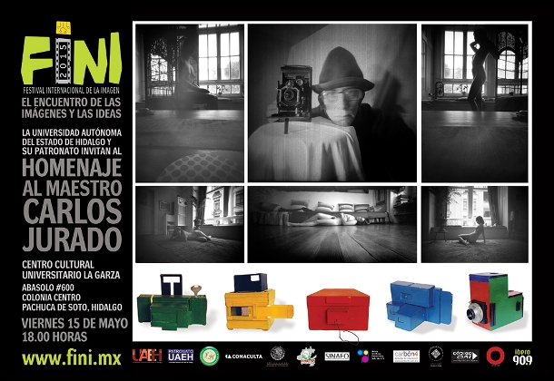 Don Carlos Jurado, en la opinión del claustro de académicos de la UAEH y de su Patronato, logró ser un pintor y fotógrafo vanguardista, pues en los años 70’s fomentó el retorno de los procesos alternativos de impresión y recreó el esplendor del uso de la cámara con estenopo, además tiene el mérito de ser el fundador de la Facultad de Artes Plásticas de la Universidad Veracruzana y ha sido merecedor del Premio Chiapas, el Doctorado Honoris Causa de la UV y es ganador del reconocimiento al mérito fotográfico y la medalla INAH por el Instituto Nacional de Antropología e Historia. Por eso, a sus 88 años recibe un merecido homenaje a su trayectoria que inició en los años 50, cuando pintó su primer mural en la Escuela de Derecho —hoy Facultad— de su natal San Cristóbal de Las Casas, Chiapas. Por eso su homenaje tendrá lugar el 15 de mayo, último día del Festival, a las 18:00 horas en el Salón de Actos, Ing. Baltazar Lumbier, del Centro Cultural Universitario La Garza.