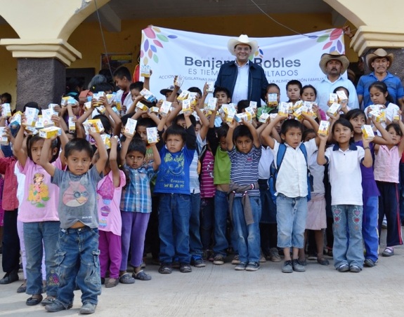 Para participar en la disminución los problemas nutricionales que existen en Oaxaca, uno de los estados más pobres del país, es necesario impulsar acciones que fomenten una buena alimentación desde la niñez, enfatizó el senador oaxaqueño Benjamín Robles Montoya al entregar cajas de leche a niños y niñas de comunidades marginadas de la Sierra Sur.