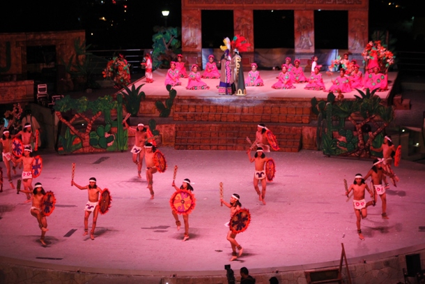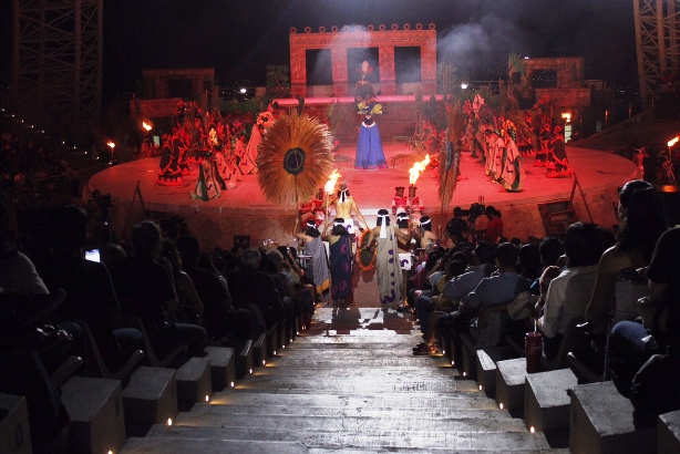 Conforme avanzó la escenificación, el misticismo que ofrece este espectáculo, acompañado por música prehispánica, luces y colores, recreaban la historia de amor y tragedia de la princesa zapoteca Donají y el príncipe mixteco Nucano.