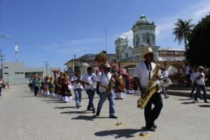 La música de banda no se hizo esperar tocando los sones tehuanos y de la región, el tronar de los cohetes anunciaban el gran acontecimiento al paso de los barrios, propios y extraños se aglutinaban en las calles para admirar esta hermosa tradición única que caracteriza a los tehuanos.![]()