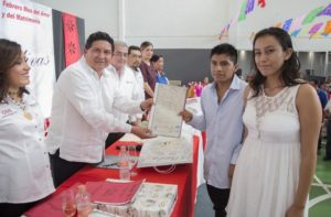 “Hoy mediante las bodas colectivas dan certeza jurídica a su unión con el acta de matrimonio que legaliza cualquier trámite en su familia, mostrando su voluntad para unir sus vidas legalmente y demostrando que quieren a su pareja, que juntos quieren construir un mejor futuro para ustedes, para sus hijos y para nuestra sociedad”, mencionó.![]()