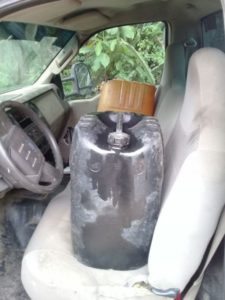 Oaxaca de Juárez, Oax. 18 de Junio de 2018.- La Secretaría de Seguridad Pública de Oaxaca (SSPO) a través de sus fuerzas policiales, conjunta acciones disuasivas con el Ejército Mexicano y corporaciones municipales; en este marco de actividades, este lunes, al implementar patrullajes en la región del Papaloapan, fueron ubicadas dos unidades de motor con reporte de robo en las que además se localizaron contenedores con un total aproximado de 1 mil 100 litros de hidrocarburo.