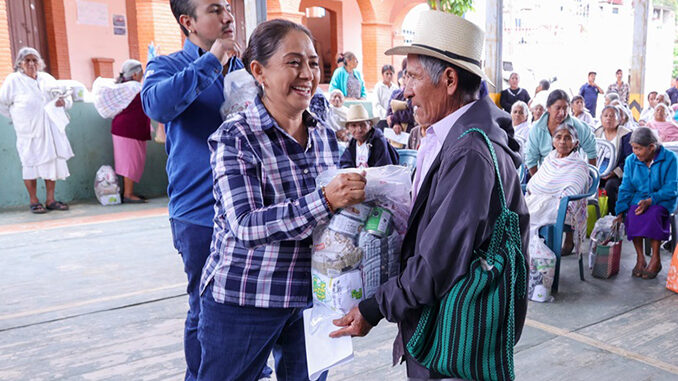 El trabajo por territorio también se reflejó en la Sierra Sur con la entrega directa y sin personas intermediarias de 800 canastas alimentarias en agencias de los municipios: San Juan Ozolotepec, Santa María Ozolotepec y San Francisco Ozolotepec.